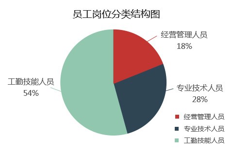 集团公司共有经营管理人员7.7万人,占在岗职工的17.9%;专业技术人员12.2万人,占在岗职工的28.3%;工勤技能人员23.1万人,占在岗职工的53.8%。