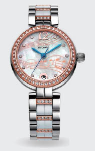 表盘:白色、珍珠母贝、锆石镶嵌、日历显示